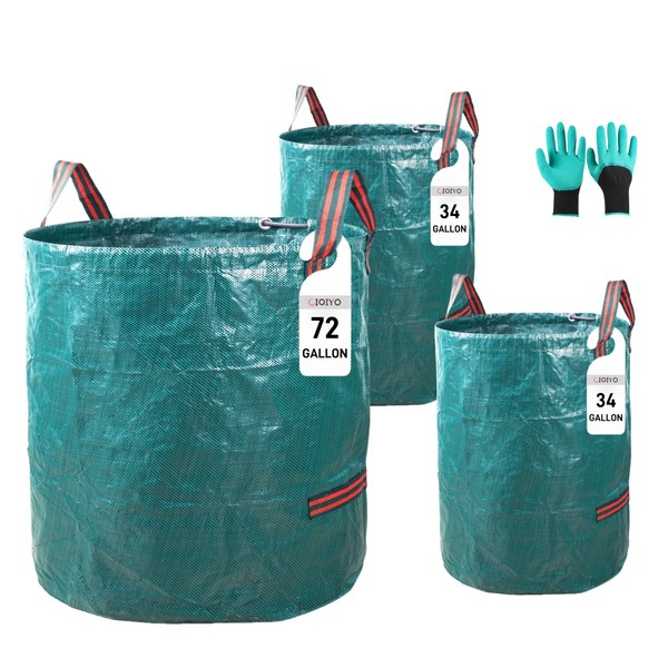CIQIYO Reusable Heavy Duty Yard Waste Bag Set include 2 Sizes, Standable Design and Reinforced 4 Handles for Lawn, Leaf, Grass, Debris (1x72Gallons+2x26Gallons)