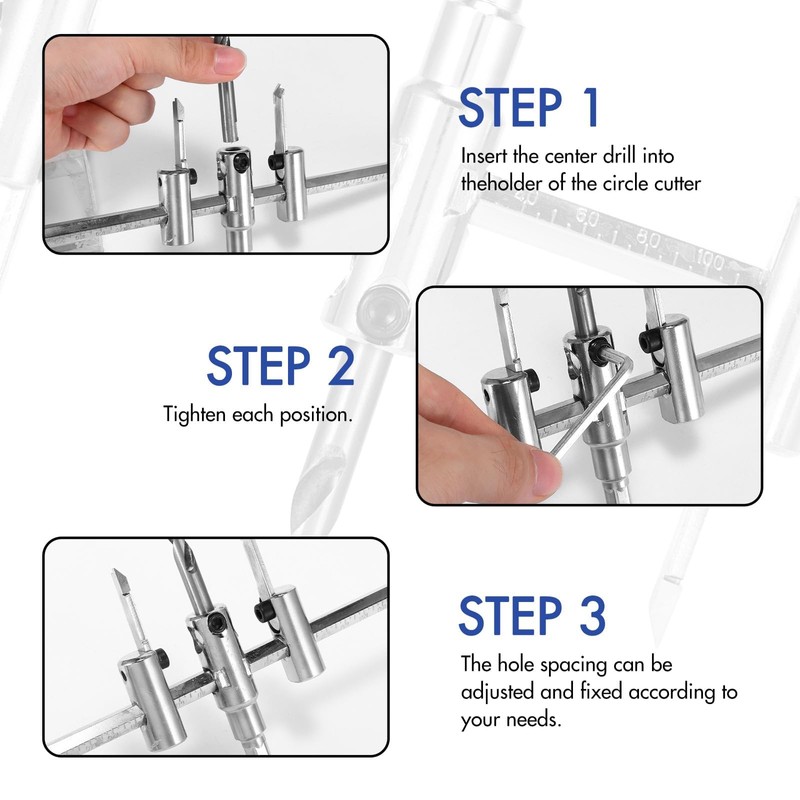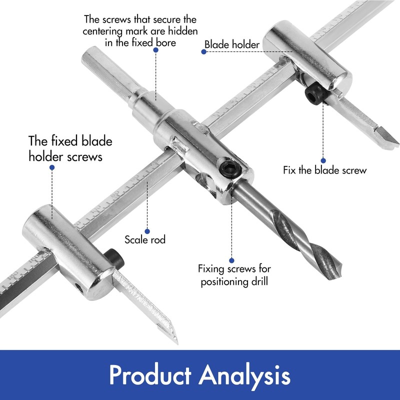 8. The aircraft-type hole opener is a DIY product. Please make sure that all screws are fastened before use. Use an electric drill to test whether the blade is fixed before drilling a hole to avoid damage caused by improper operation.