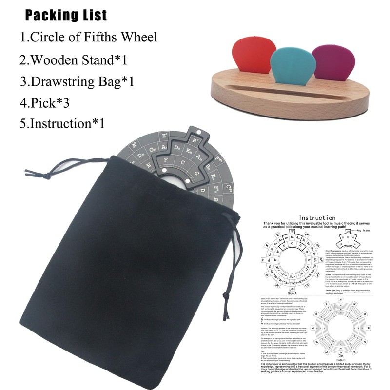 - 5.What will you get:You will get circle of fifths wheel*1, wooden stand*1, drawstring bag*1, pick*3 and instruction*1, The above items will perfectly meet your needs for learning music.