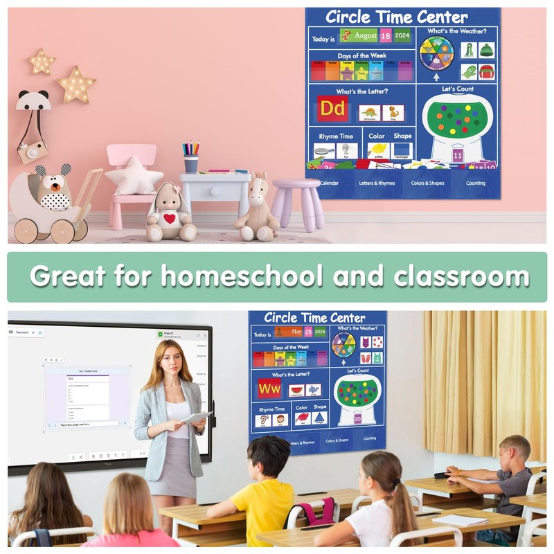 - ✅【GREAT TEACH TOOL】- Our circle time learning center helps kids to develop skills in calendar concepts, early language and early math. Give kids daily practice with calendar concepts, the alphabet, counting and more—and help the whole class build literacy skills together!