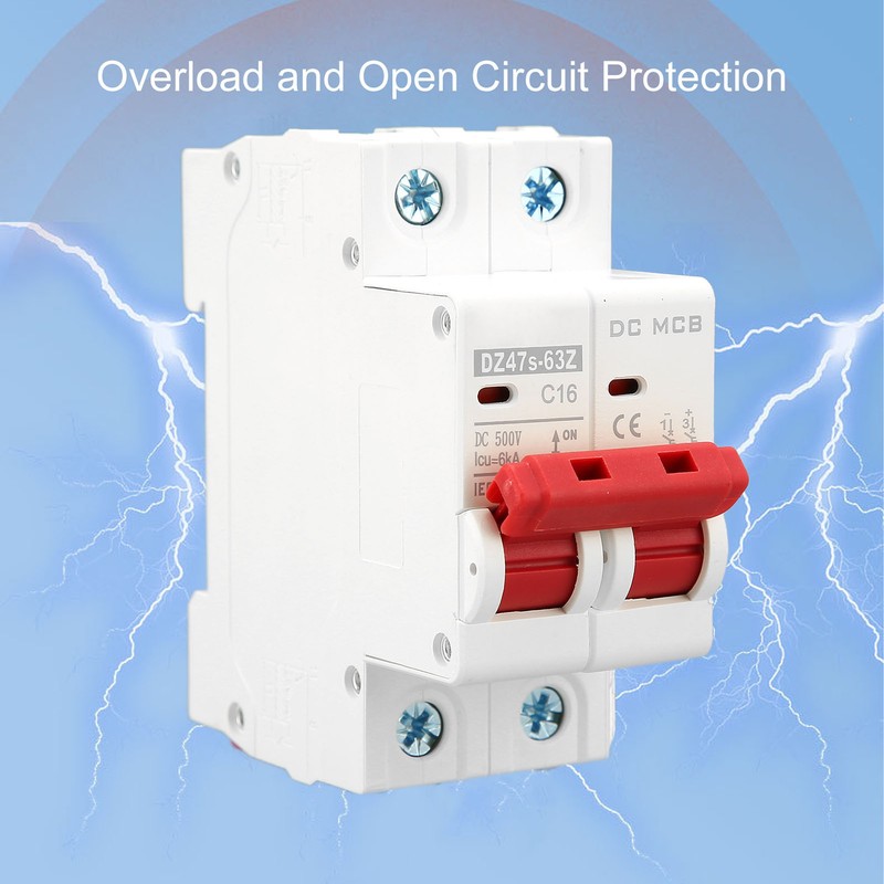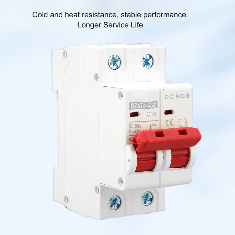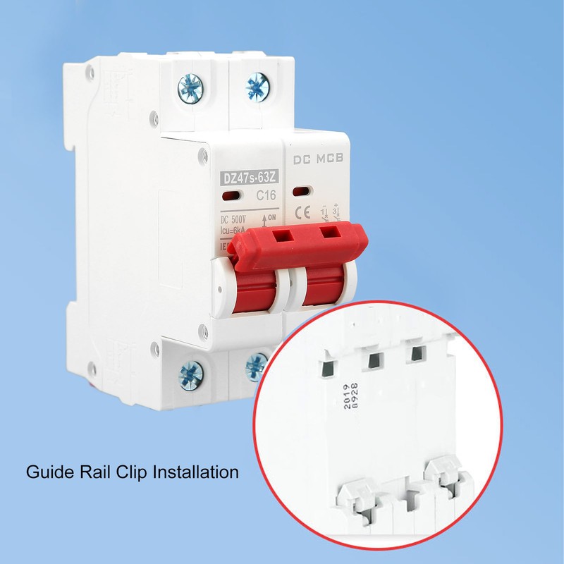 Circuit Breaker 2P DC 500V MCB 16A DIN Rail Mount Protection Switch 6000A Breaking Capacity