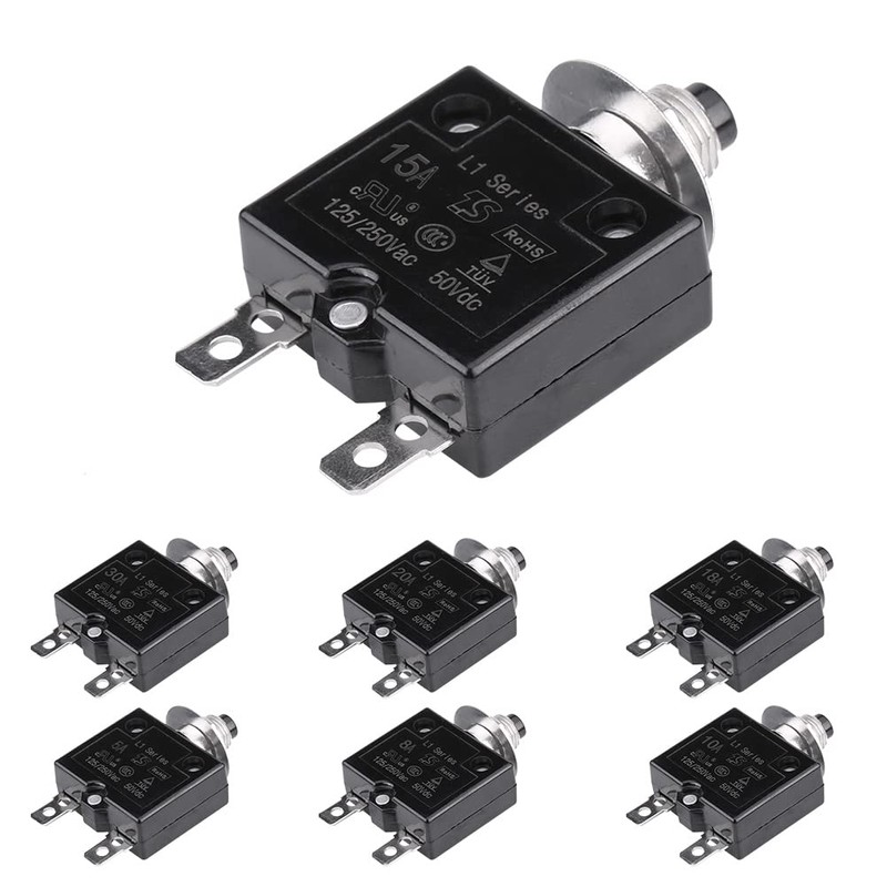 Circuit Breaker, Overload Protection, Push Buttons, Overcurrent Manual Reset, Thermal Circuit Breaker, Overcurrent Protection, Thermal Switch for Reset (15A)