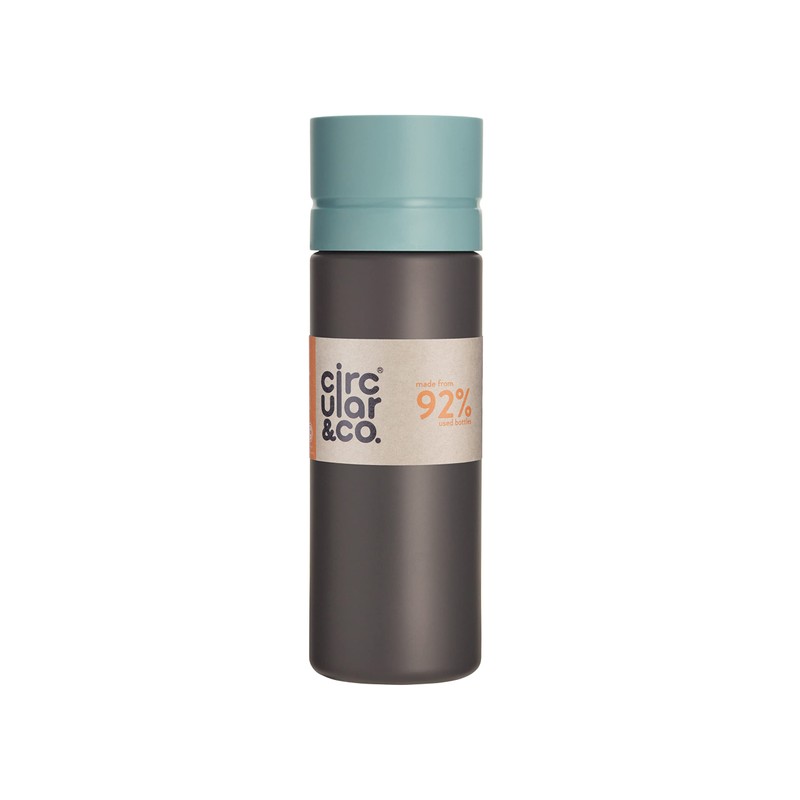 Circular and Co Leakproof 600ml Reusable Water Bottle made from 92% Single-Use Bottles (Grey Bottle & Blue Lid)