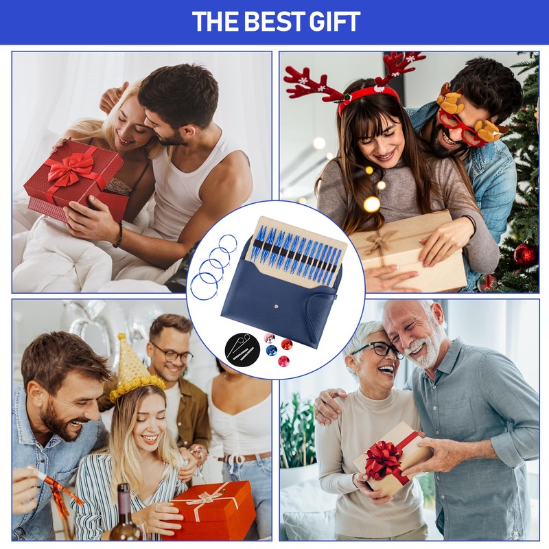 Circular Knitting Needle Set Interchangeable, 13 Pairs, 3-10 mm, Professional Knitting Accessory Set for Beginners and Adults, Easy to Use, Knitting Gift (Blue)