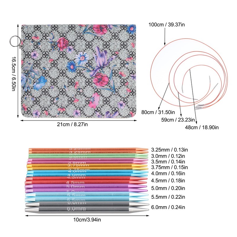 Circular Knitting Needles Set, 9 Sizes Aluminium Interchangeable Circular Nee...
