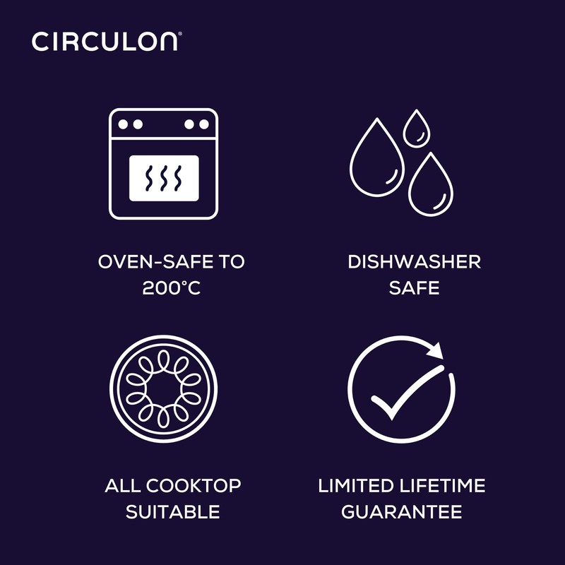 Start and end the day with delicious entrées and side dishes prepared in the stylish Circulon Espree Hard-Anodized Nonstick 12-Inch Covered Deep Skillet. This skillet’s heavy-duty hard-anodized construction provides quick and even heat distribution for faster cooking results. With the TOTAL(r) Food Release System of raised circles and the long-lasting, PFOA-free premium-quality nonstick that coats them, it’s easy to make an egg white and honey turkey scramble, sauté root vegetables or sear salmon filets without the need for added oils or fats. In addition, this superior nonstick technology offers exceptional food release and is safe for use with metal utensils. A shatter- resistant glass lid allows cooking to be monitored without losing heat or moisture. The nonstick pan’s comfortable, rubberized stainless steel handle is dual riveted for added strength and features a fold-out ring so the pan hangs for convenient storage. Oven safe to 400°F, this covered deep skillet is an ideal complement to specialty pots and other pans in the Circulon Espree collection. Just the right size to help create delicious foods for any meal, Circulon Espree Hard-Anodized Nonstick 12-Inch Covered Deep Skillet adds style to the stovetop day and night.