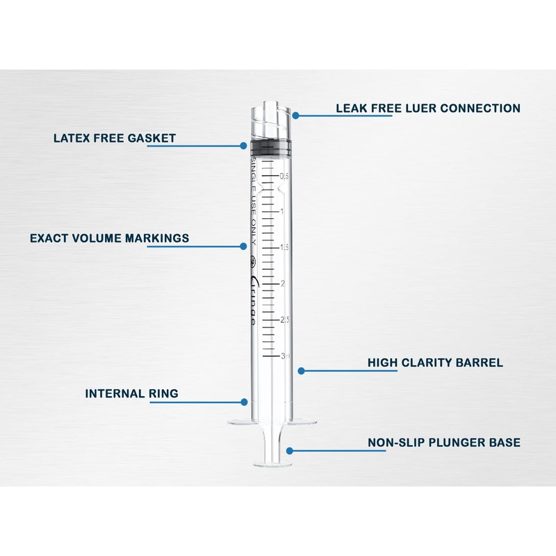 • SMOOTH MOVEMENT: Latex free piston, lubricated with silicon for a smooth draw. Internal ring in barrel acts as a lock to ensure plunger does not displace during draw