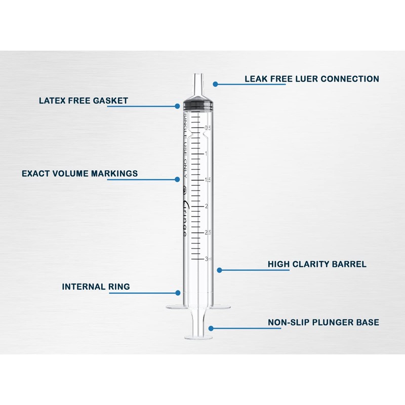 • Smooth movement - Exact marking printed on high clarity barrel with lubricated piston for smooth draw