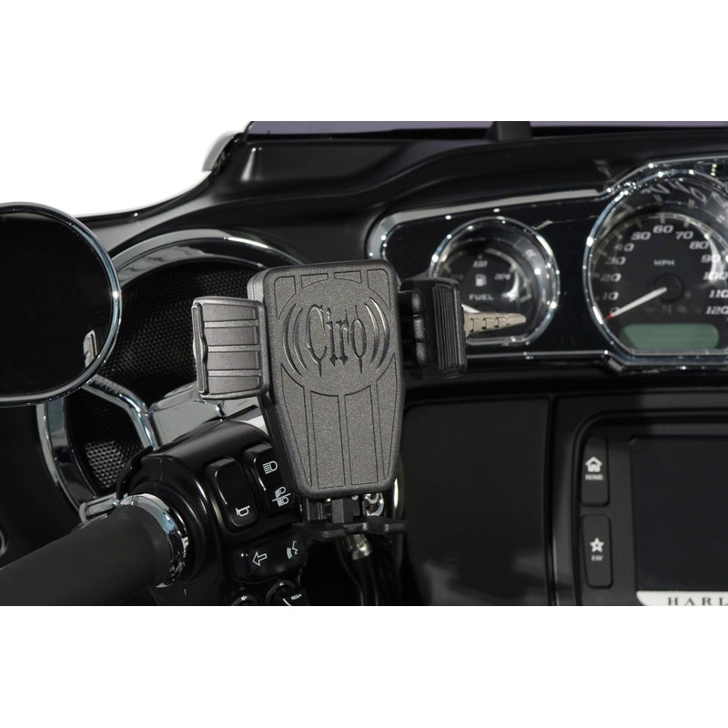 The Ciro Cybercharger is the evolution of our top rated phone holder. We've gone back to the drawing board to completely redesign, improve, and integrate 15 watt wireless fast charging into the holder. Compatible with all the latest smartphones, in all sizes, the Cybercharger will hold your phone securely while never leaving you without a charge! Patent Pending FITMENT Fits: Left or right control Perch Mount with vertical bolt spacing at 1-1/16" to 1- 11/16" from center to center to use included M6x1 or 1/4-20x1-3/4" bolts H-D: All '96-up H-D Model clutch or brake perch mounts, including Livewire (except '14-up Street 500 & Street 750) Honda: All Goldwing GL1800 (2018-up GL1800; will only fit brake side of bikes with DCT or CB switch installed), F6B, Goldwing GL1500, All VTX1300/1800 Models, '14-up Valkyrie, Shadow 750 Aero, Ace & Spirit, Shadow 1100 , All VT1300 Custom Line Models (Sabre, Stateline, Interstate), Rebel 300/500 Yamaha: All Road Star & Warrior models, all V Star models, all Venture models, all Bolt models, all Stryker models, XSR 700/900, SCR900 Kawasaki: All Vulcan 900 models, Vulcan 1500/1600 Including Mean Streak, all Vulcan 2000 models Suzuki: Boulevard M/C50/C90/M109 Indian: All '14-up models