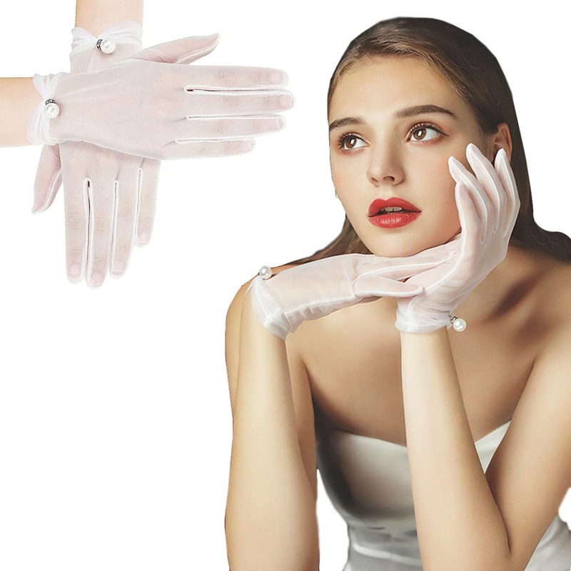 Cirsaeur Pearl Gloves, Short Bride/Wedding Gloves, White Gloves, Korean Style, Thin, Anti-Slip, Elegant Gloves, For Weddings, Ceremonies, Coming of Age of Coming of Age Ceremonies, Recitals, Dress,