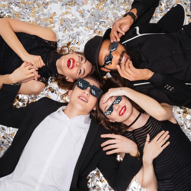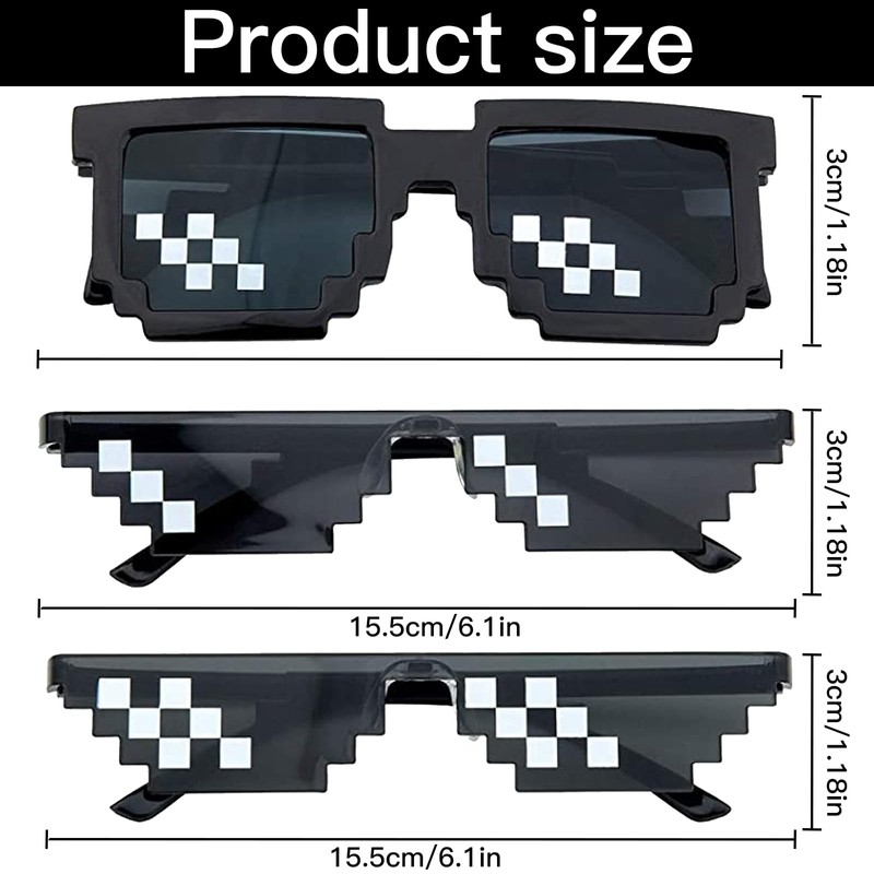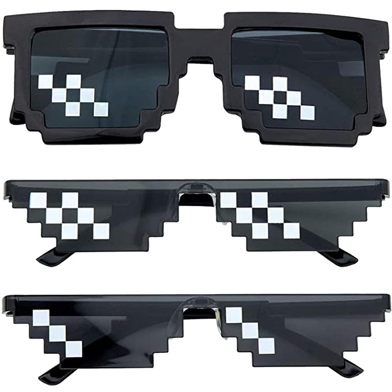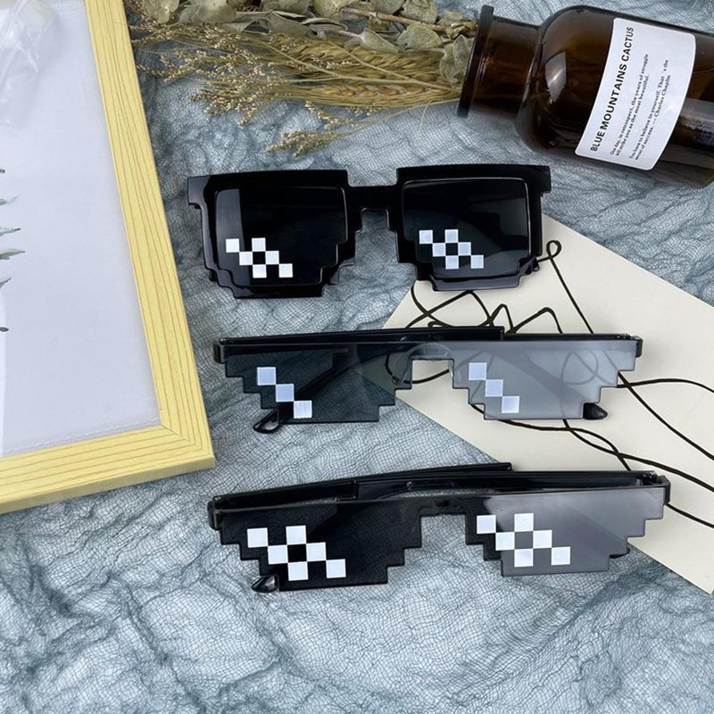 Cisixin 3 Pieces Pixel Mosaic Glasses, Funny Games Party Glasses, Black Sunglasses, Photo Props, Unisex Glasses for Travel, Photography, Theme Parties, Festivals