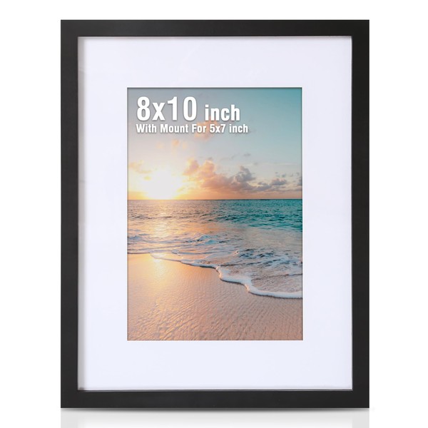 Cispree 8x10 Photo Frame -1 Pack,Wooden Picture Frames with Mount for 5x7 Print,Acrylic Clear Sheet,for Poster/Documents/Certificates/Paintings/Artwork-Black