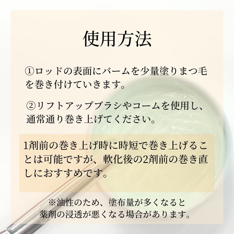 Apply a small amount of balm on the surface of the rod and wrap around the eyelashes. Add balm to the top if it gets back We recommend using a lift-up brush to roll it up at once.