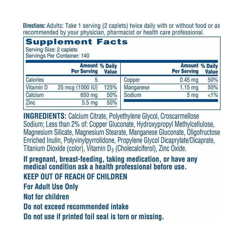 - Calcium Citrate 650 mg. and Vitamin D 25 mcg