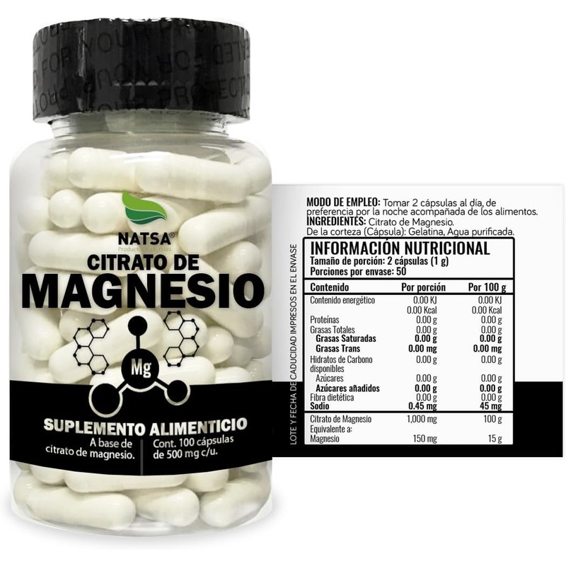 Citrato de Magnesio 100 cápsulas, calidad Premium