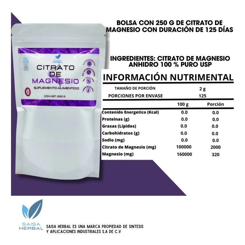En SAISA HERBAL, nos enorgullece ofrecerte un dúo dinámico que transformará tu bienestar. Presentamos el Citrato de Magnesio y el Citrato de Potasio, dos suplementos esenciales para revitalizar tu cuerpo y mente. Con más de 20 años de experiencia y certificaciones internacionales ISO 9000, somos tu aliado confiable en el camino hacia una salud óptima.