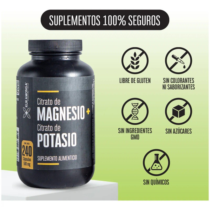 Citrato De Magnesio + Citrato De Potasio - 240 Cápsulas | Citrate Magnesium + Potassium Citrate | Duo Perfecto