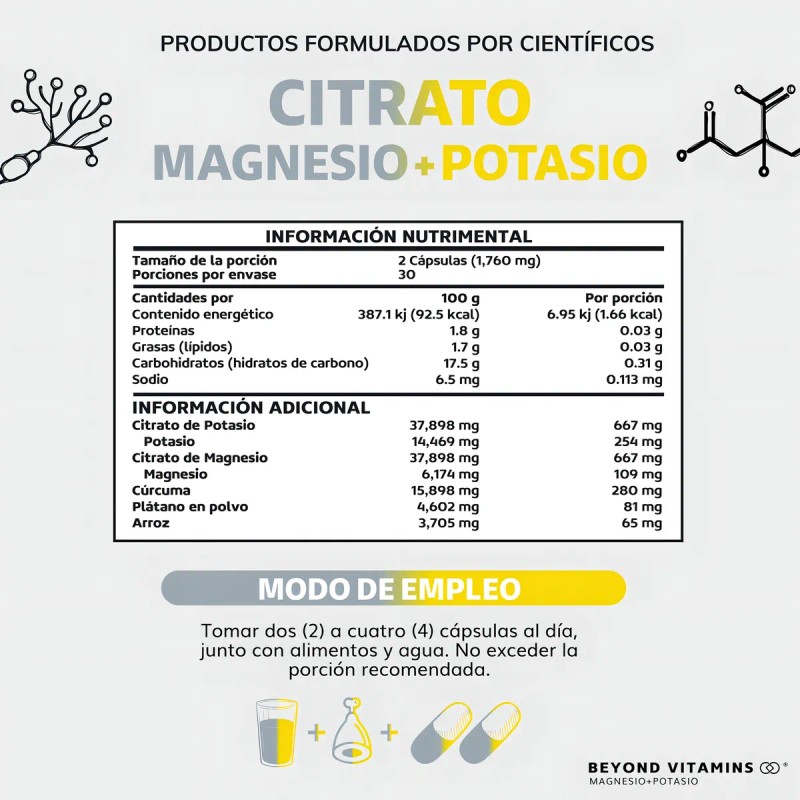 Magnesio + Potasio en forma de citratos para mejor absorción