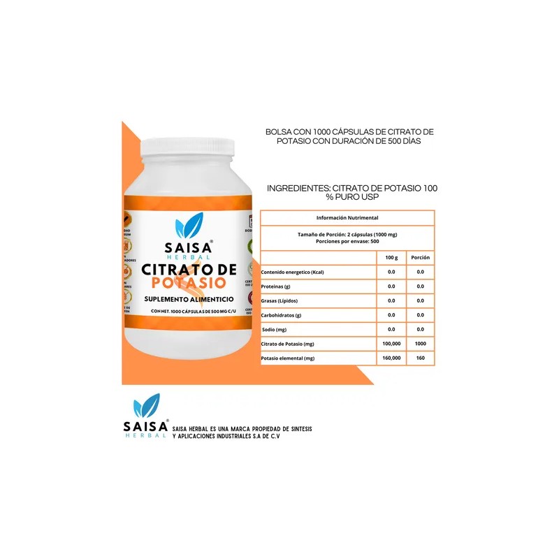 Elaborado siguiendo estándares de calidad, cada cápsula contiene una dosis de citrato de magnesio y citrato de potasio, minerales esenciales para el funcionamiento óptimo del organismo. Este suplemento es adecuado para su inclusión en la rutina diaria de personas que desean asegurar su ingesta de estos nutrientes.
