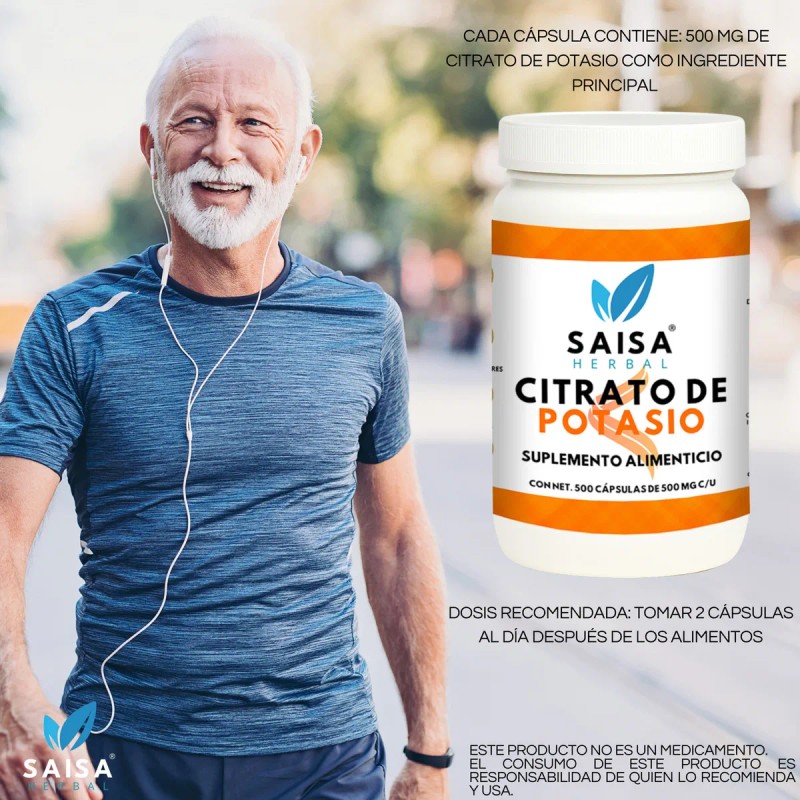 Citrato De Magnesio Y Citrato De Potasio 500 Cápsulas C/u | Suplemento Alimenticio | Saisa Herbal Sin sabor | Alta biodisponibilidad | Apoyo del sueño, Ayuda a fortalecer musculos, Vitalidad