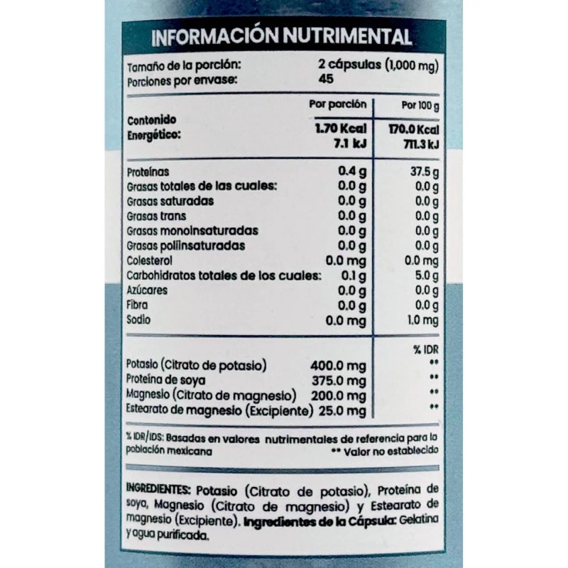 Descubre el Citrato de Potasio 90 cápsulas Flow, un suplemento nutricional diseñado para complementar tu dieta diaria. Cada cápsula está formulada con 400 mg de Citrato de Potasio, 375 mg de Proteína de Soya y 200 mg de Citrato de Magnesio, una combinación pensada para apoyar tu bienestar. Aunque este producto no contiene lactosa y no es de origen orgánico, es importante destacar que no es adecuado para veganos. Además, no es recomendable para mujeres embarazadas o en período de lactancia. Con un peso neto de 50 g, el frasco contiene 45 porciones, lo que te permite un uso continuo y efectivo. La marca Flow te asegura un producto sin sabor, que puedes incorporar fácilmente en tu rutina diaria tomando 2 cápsulas al día con alimentos. Apto para adultos mayores de 18 años, este suplemento no es un medicamento, pero está diseñado para apoyar tus necesidades nutricionales.