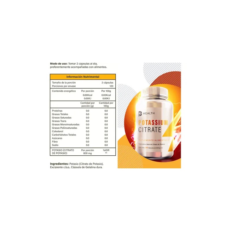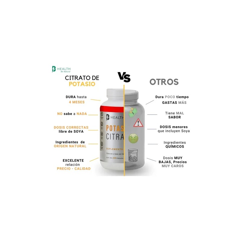 La presentación en citrato permite una mejor absorción por el organismo en comparación con otras formas de potasio. ¡Eficacia real y sin molestias estomacales! ✅👅