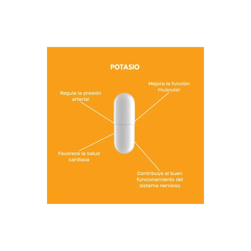 El potasio regula los niveles de electrolitos en el cuerpo, manteniendo el ritmo cardíaco, la presión arterial y la hidratación celular en balance. Ideal para deportistas o personas activas. 🥤❤️