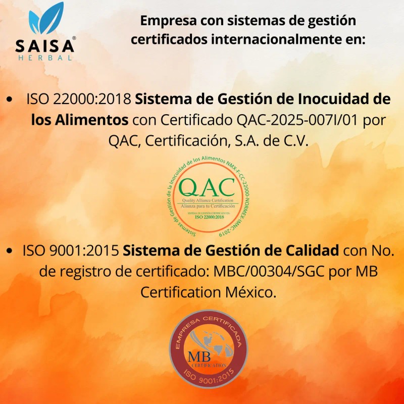 - base adecuado, puede mejorar la digestión y la función intestinal. Nuestra empresa cuenta con dos décadas de experiencia en el mercado de productos naturales y estamos comprometidos con la calidad, avalada por la certificación ISO 9001 2015. Aviso legal