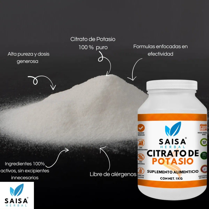 Citrato De Potasio Puro Con 1 kg en polvo | Suplemento Alimenticio | Alta Biodisponibilidad | Sin Sabor Saisa Herbal | Ayuda A Prevenir Cálculos Renales, Salud Cardiovascular, evita calambres