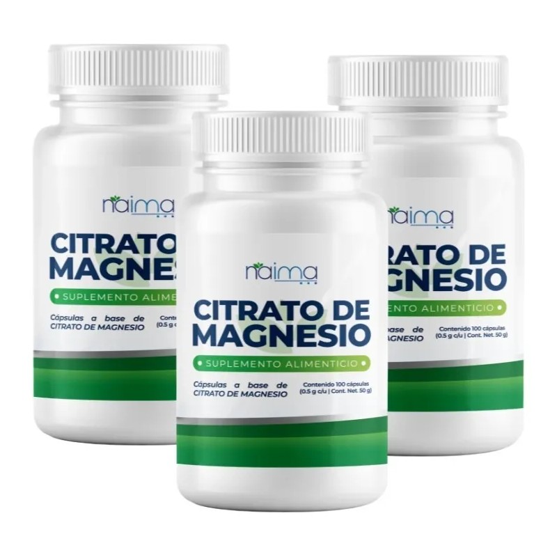 Citrato Magnesio 500mg - 3 Frascos - 100 Cápsulas