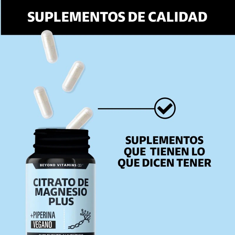 - Prepárate para conocer el poder del Citrato de Magnesio Plus, una fórmula diseñada para llevar tu bienestar al siguiente nivel. Hemos desarrollado una mezcla superior que combina Citrato de Magnesio, una de las formas más biodisponibles de magnesio, con Magnesio Elemental. Hemos potenciado nuestra fórmula con Piperina al 95%, un extracto de pimienta negra que optimiza la absorción de los nutrientes, asegurando que cada miligramo de magnesio sea aprovechado al máximo por tu organismo. La sinergia entre estos componentes convierte a Citrato de Magnesio Plus en un suplemento que brinda beneficios que sentirás en tu día a día. La calidad es nuestra mayor promesa. Cada lote de Citrato de Magnesio Plus pasa por rigurosas pruebas para asegurar su pureza y eficacia. Nuestro compromiso con la transparencia y la ciencia te garantiza que lo que ves en la etiqueta es lo que obtienes: un suplemento que cumple con las más altas expectativas de calidad. Da el primer paso hacia una vida más equilibrada y saludable con Citrato de Magnesio Plus. Cada cápsula es un paso hacia una salud plena. Aviso legal