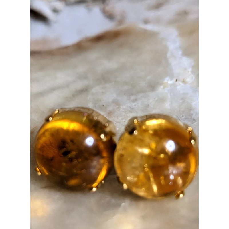 Citrine 12 Carats Natural Honey Citrine Domed In 18k Gold Plated Stud Earrings