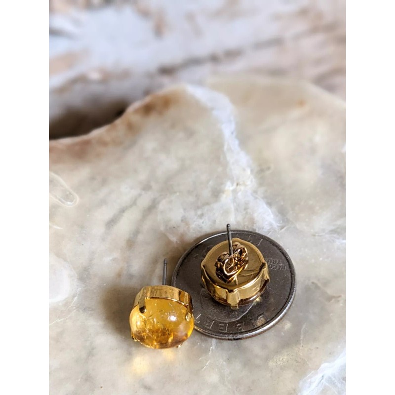 12 Carats Natural Honey Citrine Domed In 18k Gold Plated Stud Earrings