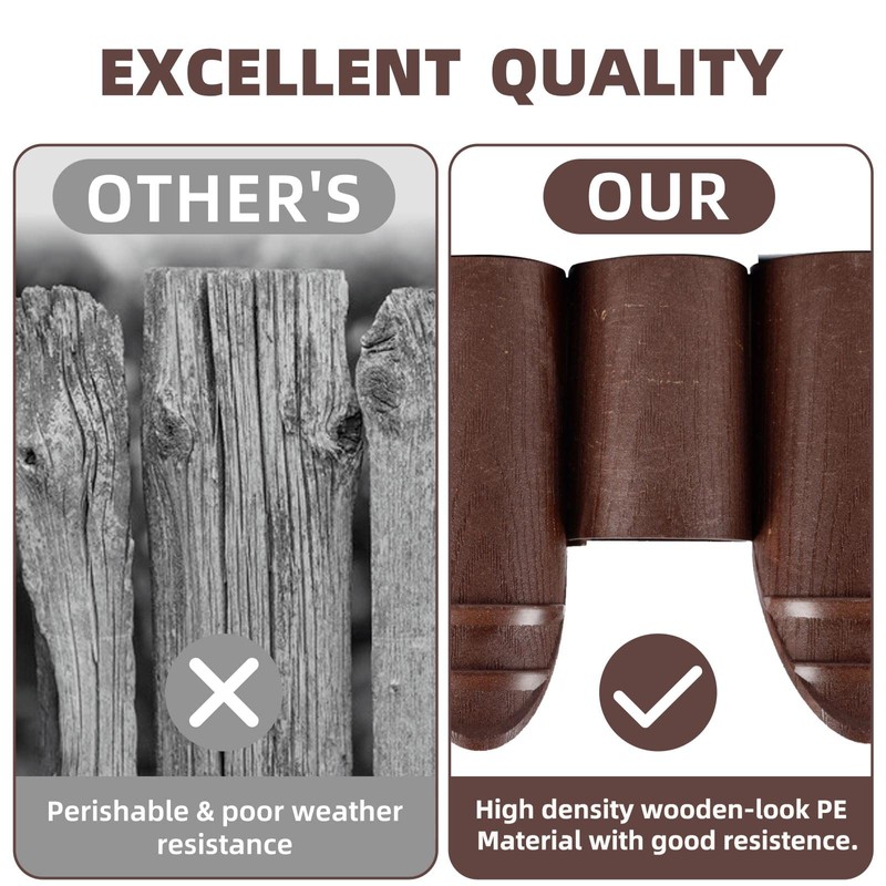 - About Material: Made of high density wooden-look PE construction. High temperature and water resistence. No worry use for all season long.