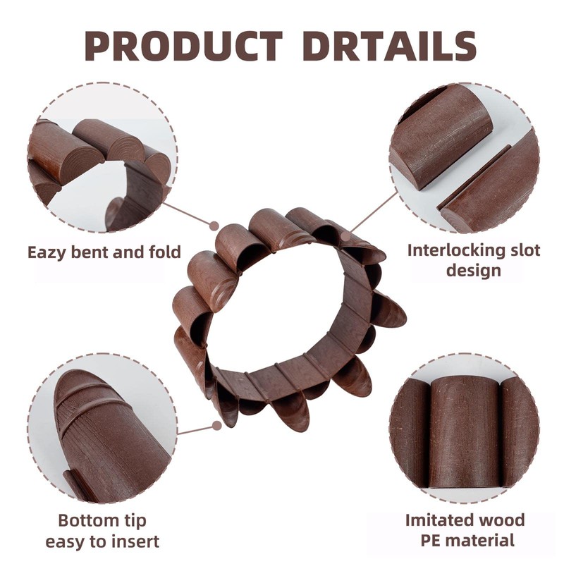 - Product Dimension: Come with 45 pcs of half-rounded edging with total length of 10ft. About 4 inch above the ground and 2.75 inch of Subsoil depth. Every 3 edging has one with archoring tip which provide enough stability.