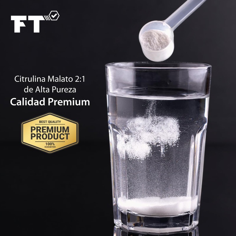 Citrulina Malato de Alta Pureza 300g 60 servicios - FT Pure Malato de Citrulina 100% Pura - Pre Entreno Precursor de Oxido Nitrico - Sin saborizantes, Sin excipientes.