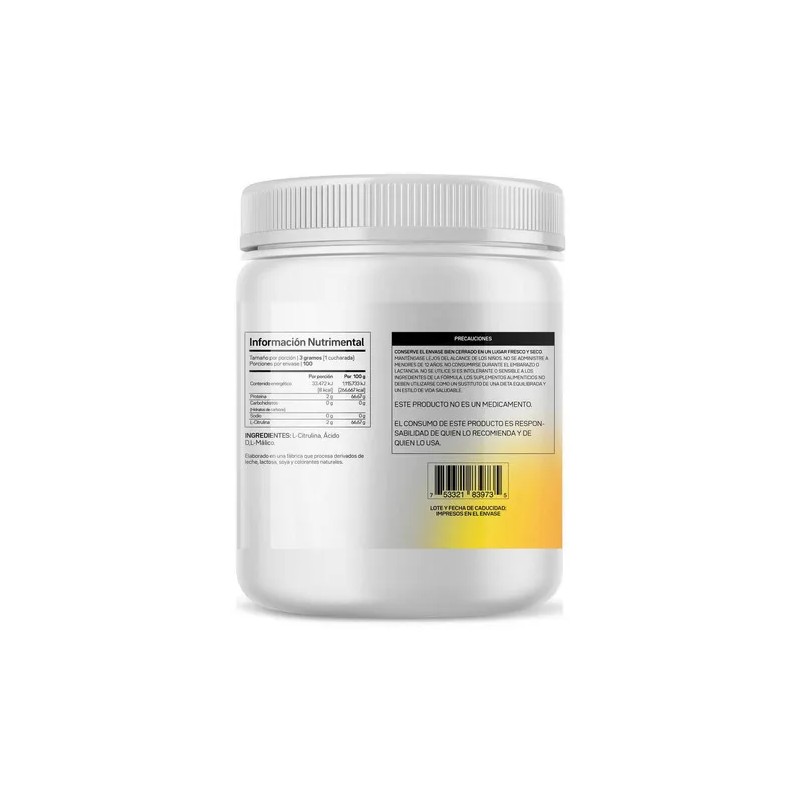 La citrulina malato es un suplemento que ayuda a mejorar el rendimiento durante el entrenamiento, es una combinación de L-citrulina y Ácido málico. La citrulina participa en diversas funciones metabólicas como el ciclo de urea, transformando el amoniaco en urea. La Citrulina es un precursor de la arginina que produce óxido nítrico (NO), favoreciendo la vasodilatación y mejorando la circulación de la sangre y el suministro de oxígeno en todo el cuerpo. El ácido málico, presente en frutas como las manzanas verdes, cerezas y arándanos, participa en el metabolismo y la producción de ATP, fundamental para la energía celular. Entre sus beneficios se incluye la mejora de la fuerza, el rendimiento y la recuperación después del ejercicio, y es utilizado en personas con fatiga crónica y fibromialgia.