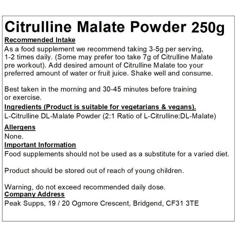 Citrulline Malate Powder | Pure | 2 to 1 Ratio (250g)