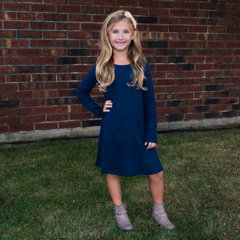 - Cute Comfortable Long Sleeve Dress made with 100% cotton that breathes and provides slight stretch for active kids.