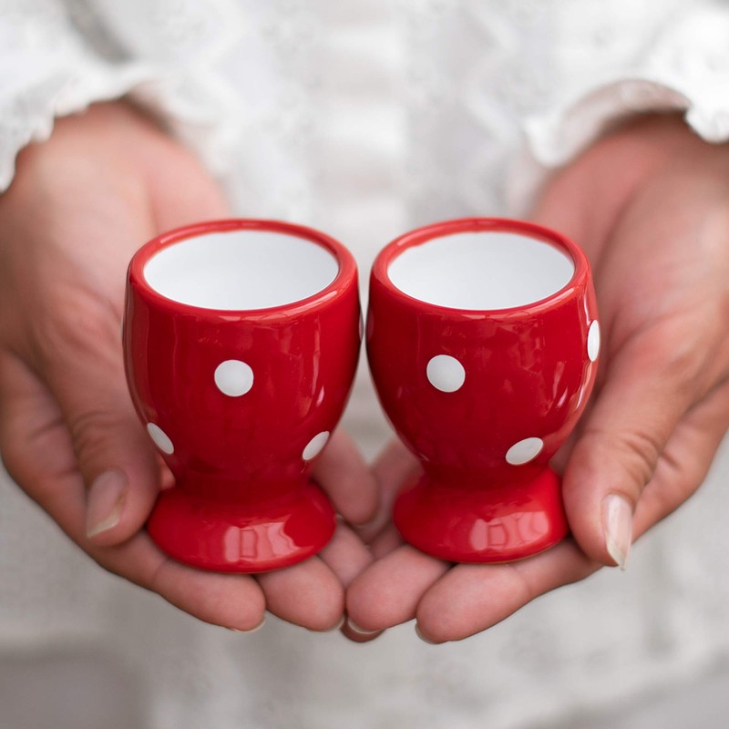 City to Cottage Ceramic Egg Cup Holder Set of 2, Soft Boiled Egg Cups, Hard Boiled Eggs Stand Holders, Breakfast Cooking Kitchen Egg Serving Cup, Handcrafted Egg Cup (Red Polka Dot)