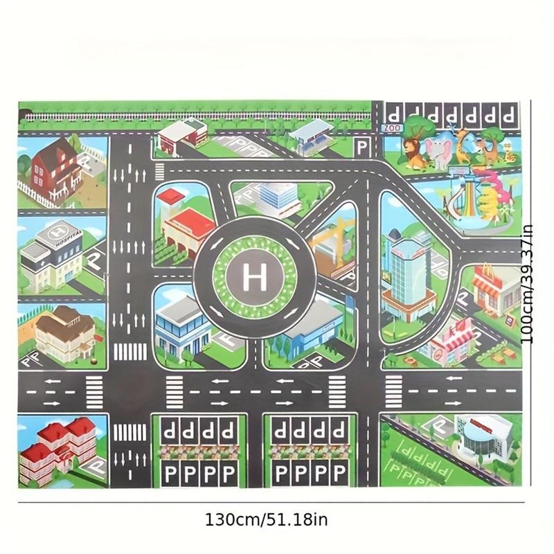 City Traffic Play Mat, Large Non-woven Game Pad, Waterproof Moisture-proof Interactive Road Map for Kids Playing with Toy Cars, Nursery Development Mat, Toys:_Green_Urban traffic graphics