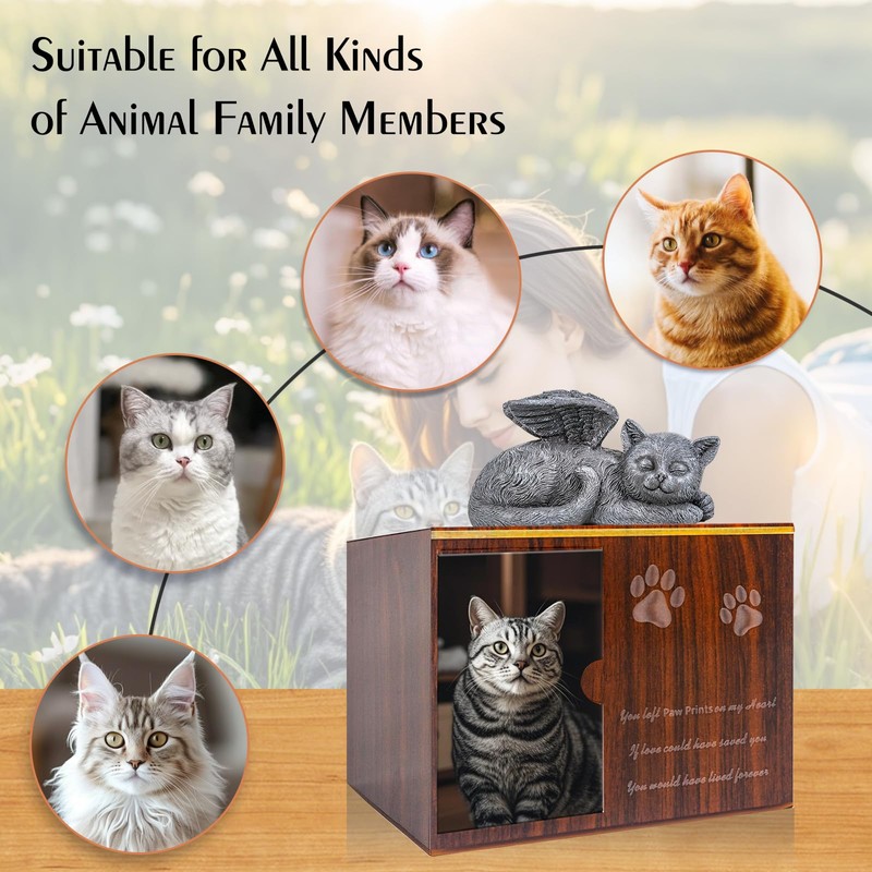 - 【Personalize Your Pet's Memory】 Our cat urns for ashes feature a customizable photo display area on the front, allowing you to showcase your favorite picture of your pet. This personal touch helps you relive the joyful moments shared with your best friend.