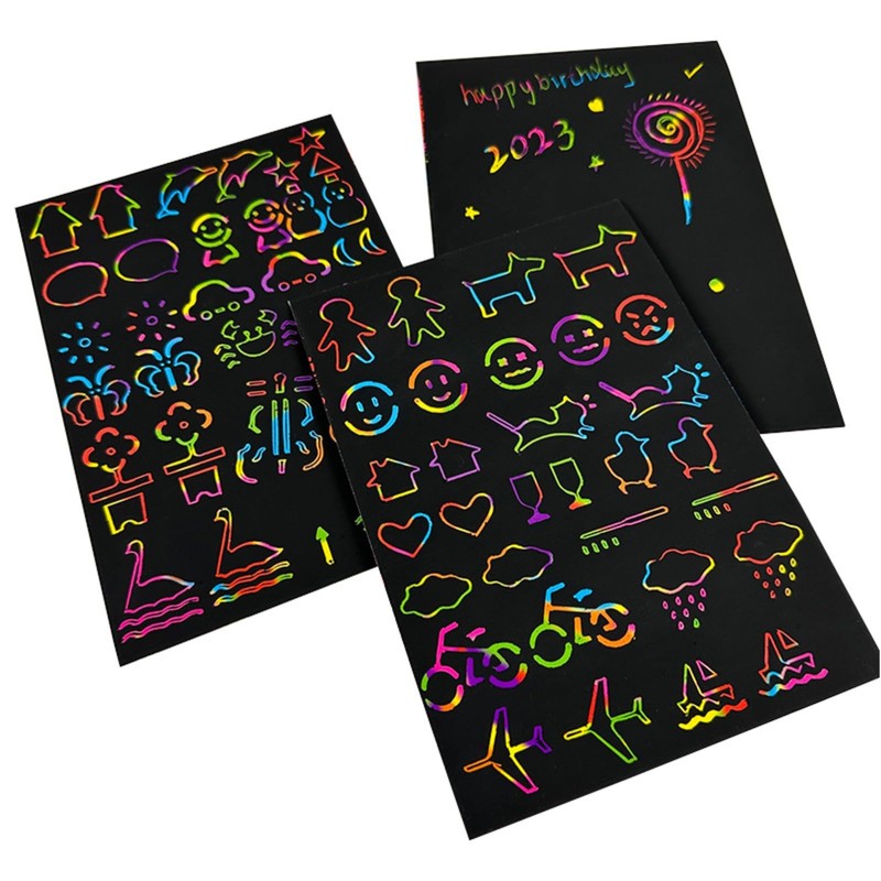 Cityrosy 32 pcs Drawing Stencils,Rainbow Scratch Paper for Stencils, Kids Activity Kit,Suitable for Classroom,Birthday,Party