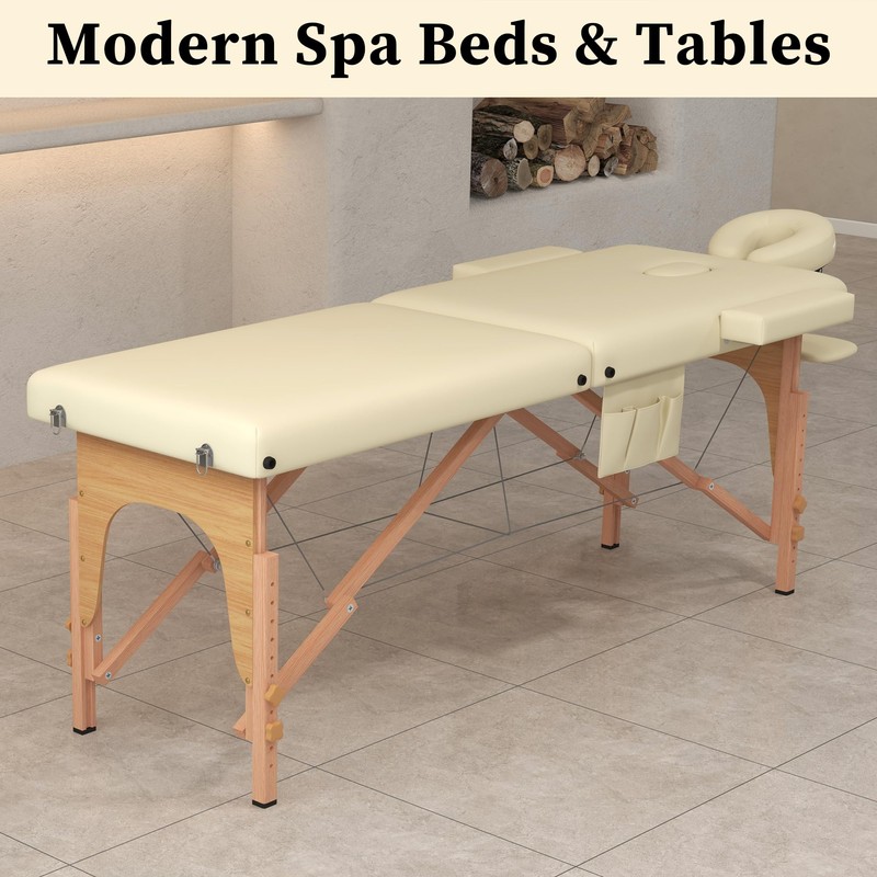 civama Massage Table Massage Bed Portable, 29 LBs Light Weight Foldable Tattoo Facial Care Spa Lash Bed Aluminum Frame with Accessories Carrying Bag, Beige