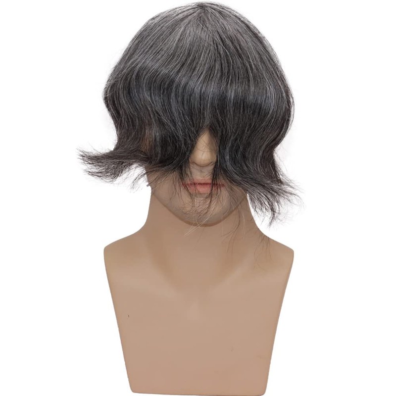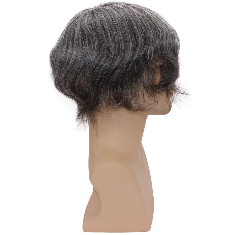 Civmo Men toupee Mono Lace with PU Toupee for Men 100% European Human Hair Replacement System Mens Toupee Men's Hairpiece Wigs for men (1B Mixed 50% Grey White Hair)