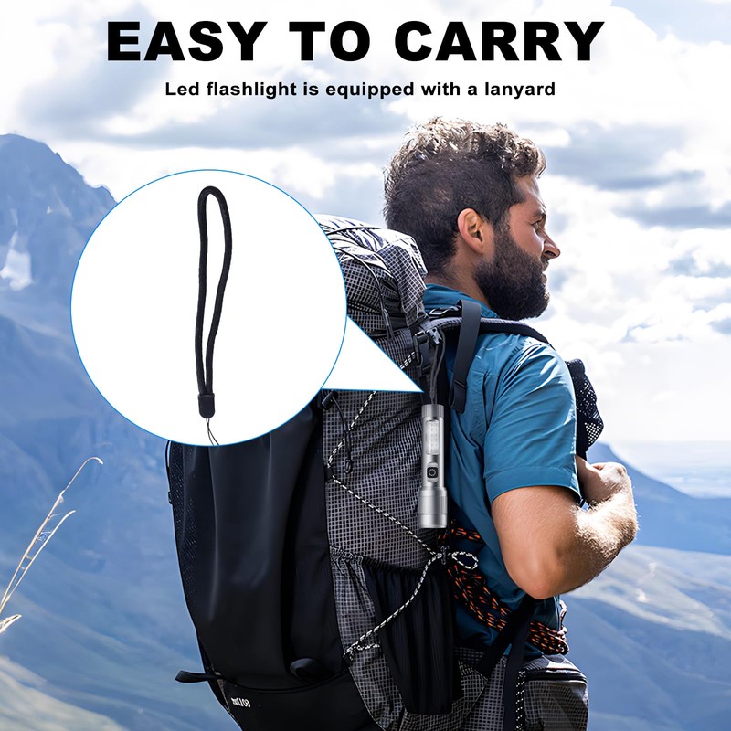 • 【EASY TO CARRY & IPX6 WATERPROOF 】Led flashlight is equipped with a lanyard, Which can be hung on the side of the backpack or put into the backpack for easy carrying. Flashlights also come with removable pocket clip, Easily attached to your pocket, hat, or belt.The Handheld flashlight is IPX6 waterproof, this waterproof flashlight non-slip, shockproof, waterproof, rainproof, dustproof, can be used in camping, hiking and others Rain, snow or other outdoor emergency situations.