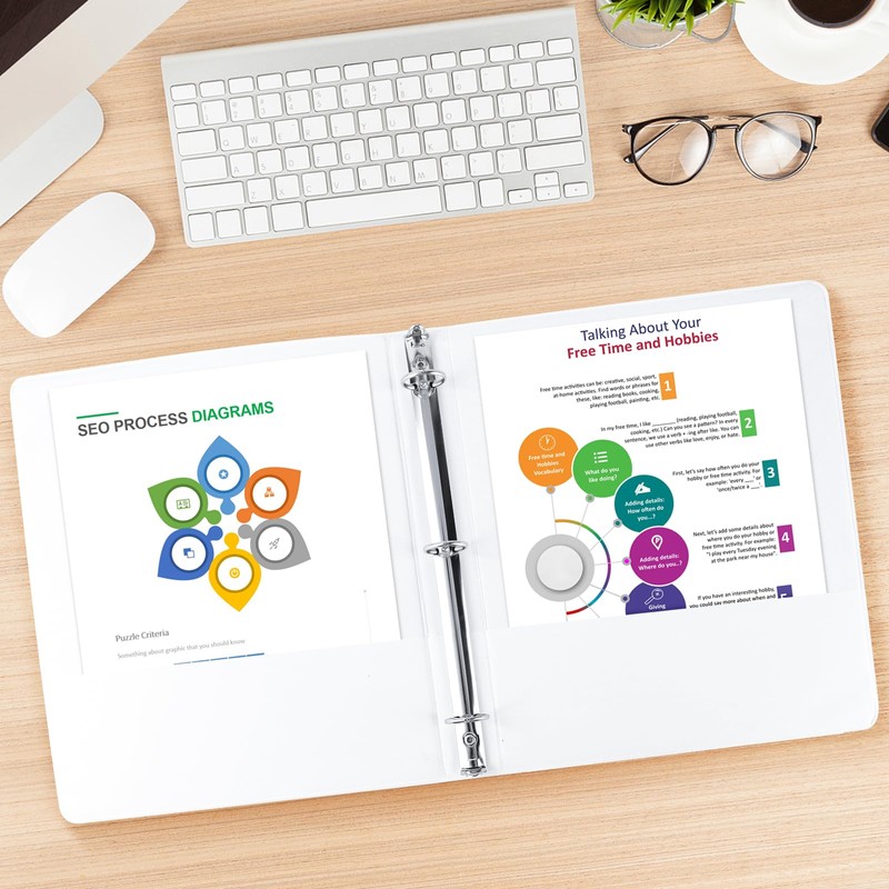 - Basic presentation view binders with clear view ploy pocket allow customer to customize the covers.