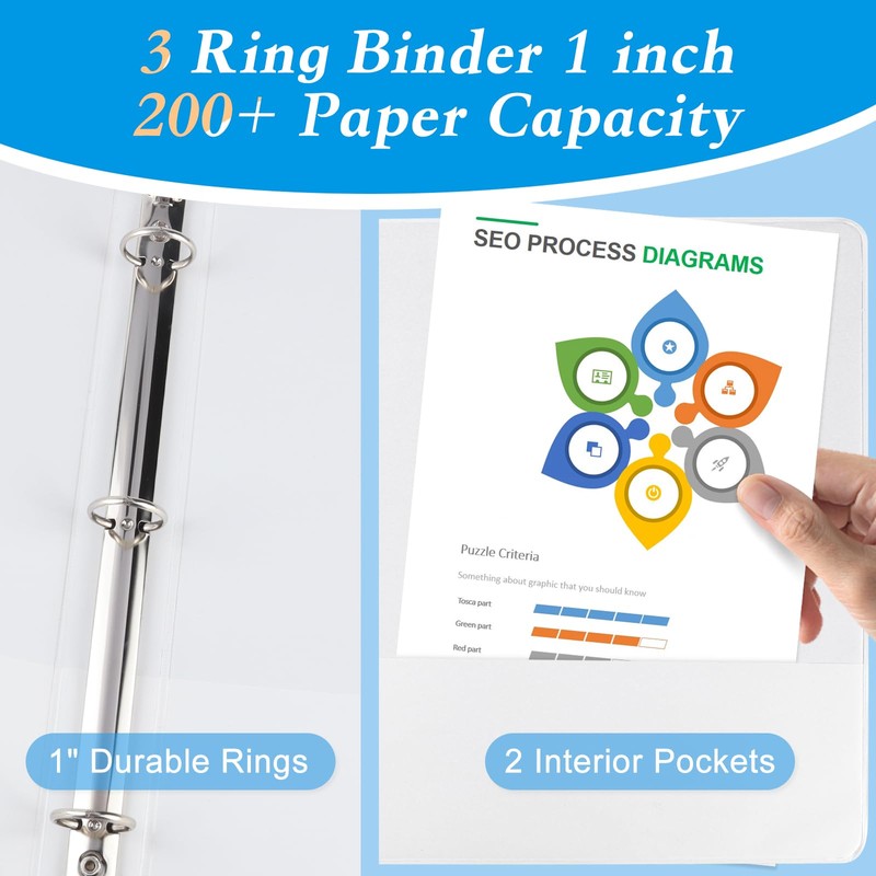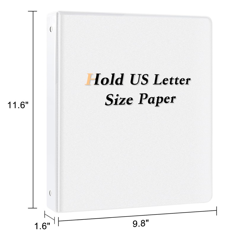 - 1" white binders hold us Letter size 8-1/2" x 11" paper, round ring can hold 200+ paper capcity, 12 packs.