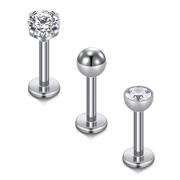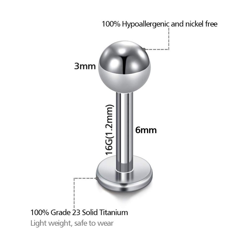 Cizme 3pcs Titanium Lip Labret Studs Bars 16G 6mm 8mm 10mm Helix Tragus Cartilage Earring Studs Piercing