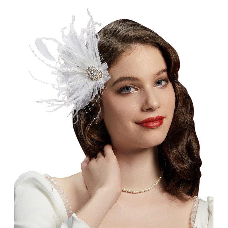Cizoe Fascinators 20s Gatsby Flapper Acessories Art Deco Party Accessory Peacock Feather Headpiece(L-White)